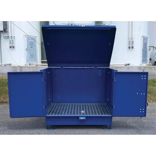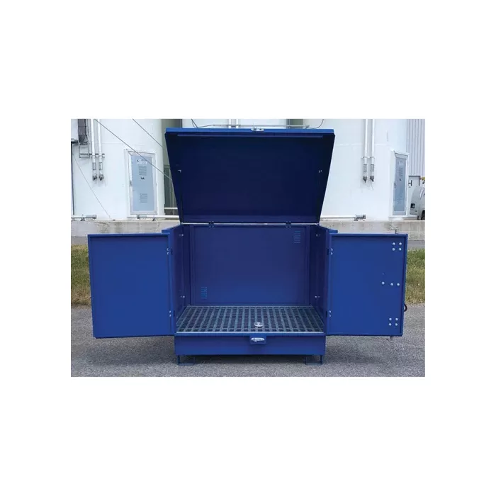 - Heavy-duty steel containment unit securely stores up to four (4) 55-gallon drums