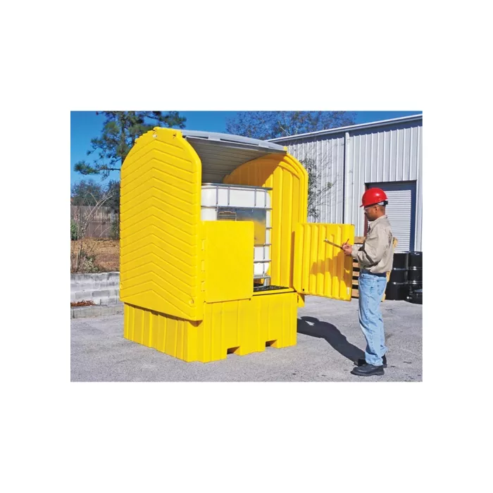 - Upper roll top door and lower swing-out doors combine to allow easy and convenient access to IBC