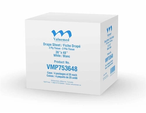 Valuemed's exam drape sheets are made from two layers of tissue bonded together and embossed for comfort. Ideal for professionals exams and procedures. Size: 36" x 48" Colour: White 100 sheets/case