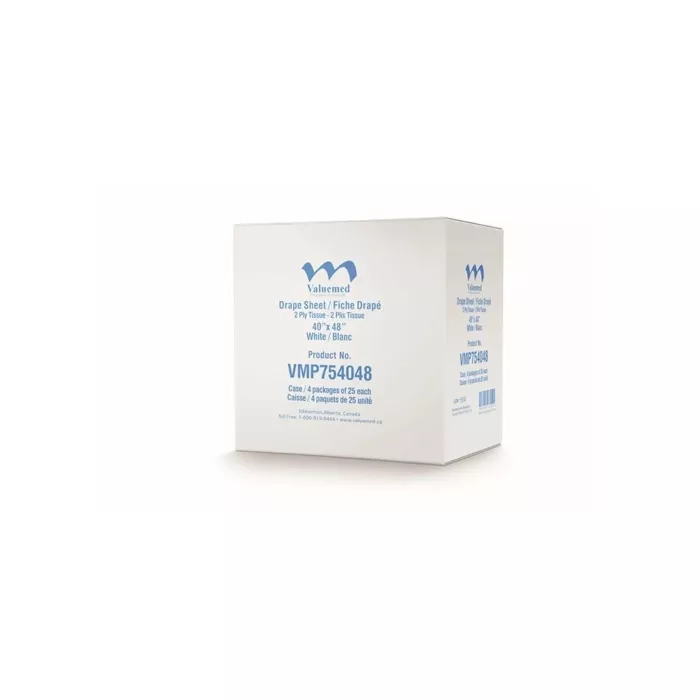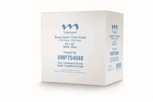 Valuemed's exam drape sheets are made from two layers of tissue bonded together and embossed for comfort. Ideal for professional exams and procedures. Size: 40" x 60" Colour: White 100 sheets/case| Made in Canada | Yes |