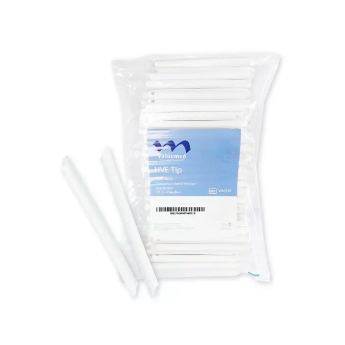 Valuemed's high quality single use high volume evacuation tips ensure efficient aspiration. Straight handle with 45° angled & vented tip. 100 evacuators/bagOverview