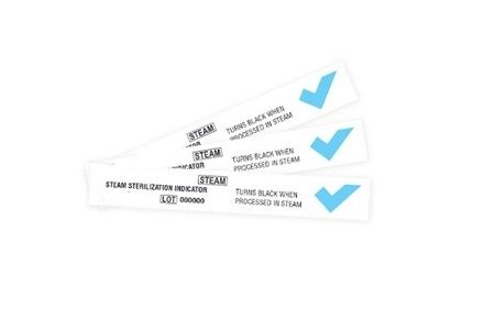 Steam Indicator Strips Change Color When SterilizedShows a distinctive blue to black color change that is not reversible. Indicated for use in gravity and vacuum cycles.