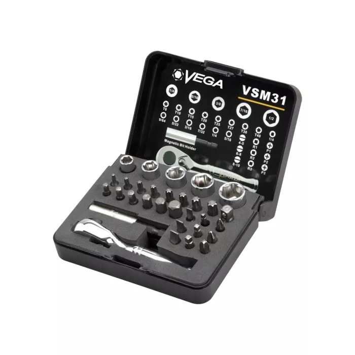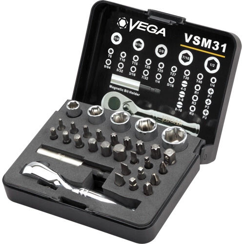 - Includes 1/4" square drive sockets: 1/4", 5/16", 3/8", 7/16", 1/2"