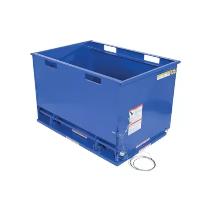 - There are built-in fork pockets to pick up hopper from the top, allowing the bottom to open and the hopper to be quickly emptied