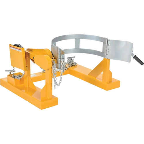 - Easily transport and rotate 55-gallon steel drums using a fork truck