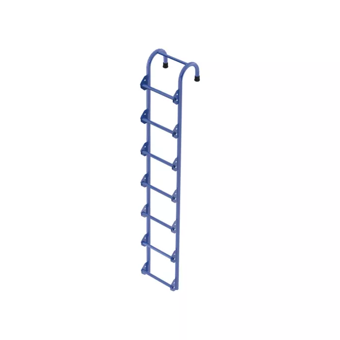 - This ladder has a durable welded steel construction and a blue powder coat finish