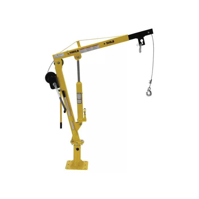 - Telescopic boom design with manual hydraulic hand pump to pivot boom up and down