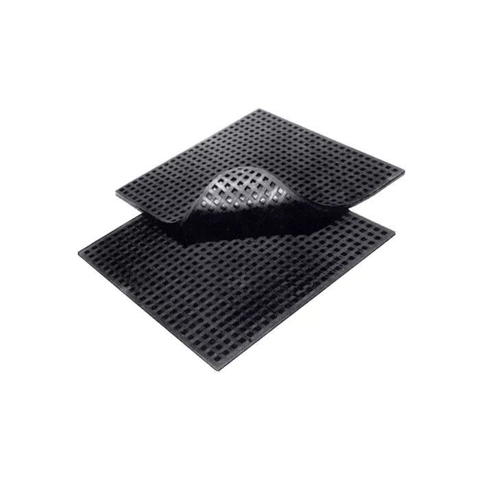 - Install machinery and equipment on double sided moulded neoprene pads to isolate vibration, shock and reduce noise level. Waffle design allows material expansion without losing stability. Pads should be cut to the size of machines feet allowing 1/2" margin on all sides. Pads resist oil and solvents.