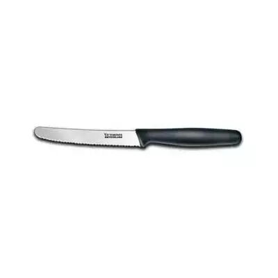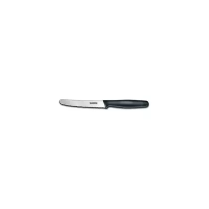 4.25" steak knife with black polypropylene handle. NSF certified.