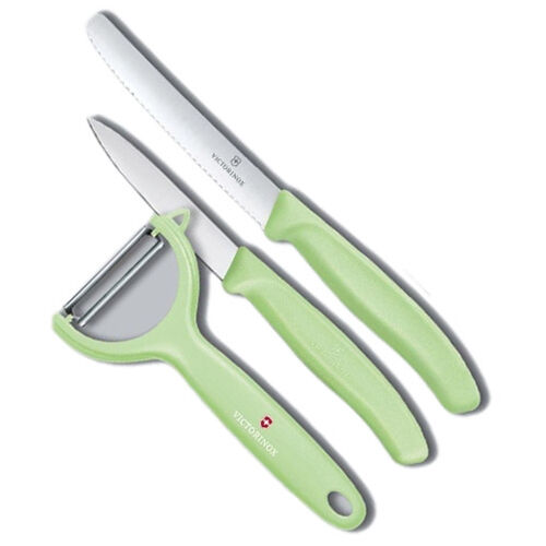 • Contains: 8 cm straight edge Swiss Classic Paring Knife, 11 cm wavy edge Swiss Classic Tomato Knife and Swiss Classic Tomato and Kiwi Peeler