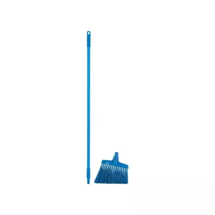 - The angled design of this broom makes it easy to reach into narrow spaces between equipment when sweeping debris before the scrubbing action starts