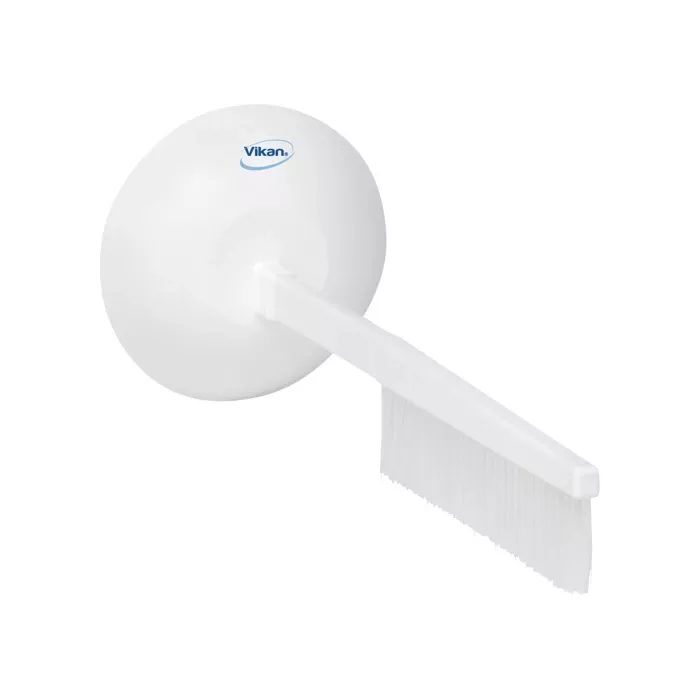 - The narrow single row of bristles fits perfectly between the blades of any bowl cutter