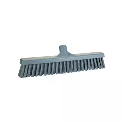 - Stiff bristles in the front loosen dirt and push heavy debris, while soft bristles in the back gather fine particles