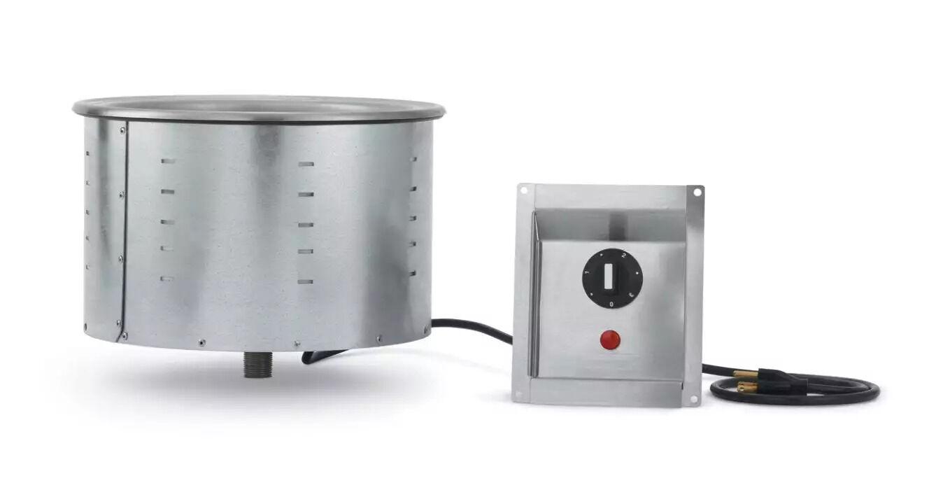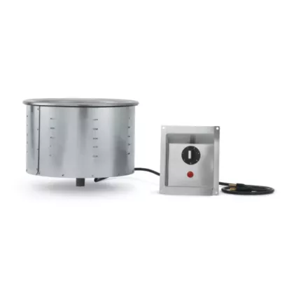 Serve delicious soups at perfect serving temperatures with the round modular soup drop-in hot well by Vollrath. Made of 300-Series stainless steel and insulated with high-density glass fiber, this hot well is equally durable and high-performing. The 6-foot power cord and 4-foot control cord offer flexibility of placement, with no hardwiring required. The easy-to-use infinite controls ensure accurate temperature settings, while the ¾-inch ball valve shutoff drain creates a reliable seal.