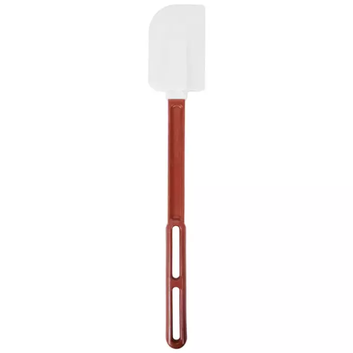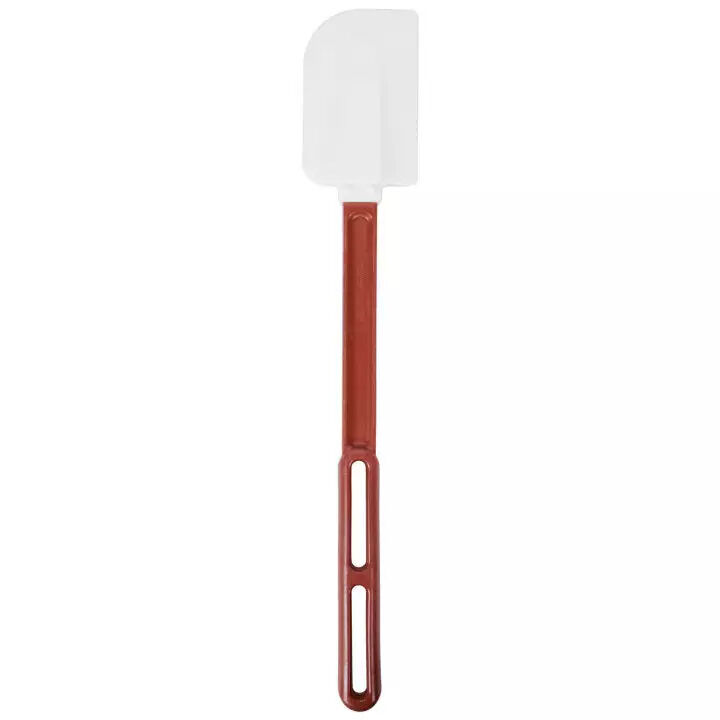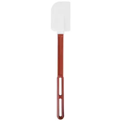 The Vollrath® 16 ½-inch High-Temperature Silicone Spatula is the ideal tool for any kitchen. Designed with versatility and functionality in mind, this spatula can handle all your scraping and scooping needs with ease. The silicone blade is contoured and flexible, making it easy to maneuver around curves and corners in your pots and pans. It's also stain- and odor-resistant, ensuring it will maintain its high-quality appearance even after multiple uses.