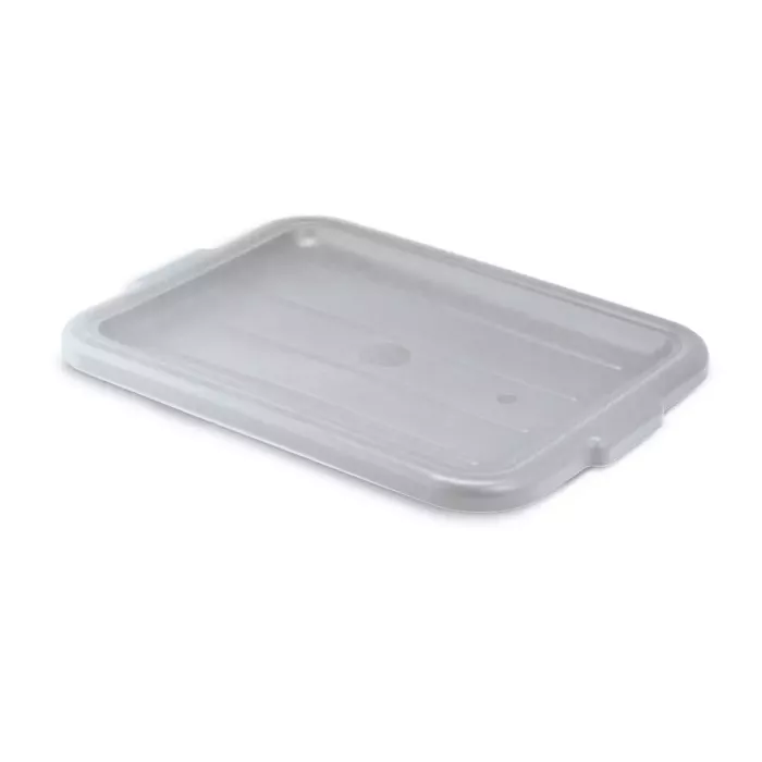 The Sysco Traex bus box cover easily secures dishes inside the bus box, preventing messes and creating a smooth appearance for your bus station. Made of durable polypropylene, this neutral gray bus box cover will last for years. The recessed design allows you to easily stack your bus boxes for superior storage and transportation, making this bus box cover an excellent addition to any kitchen.
