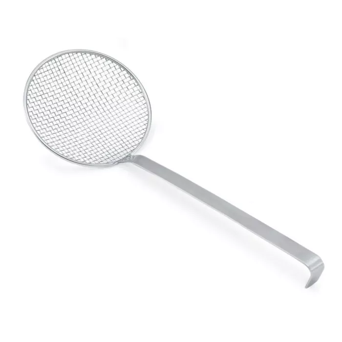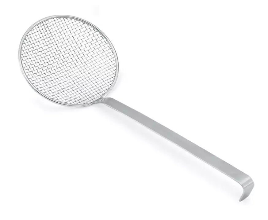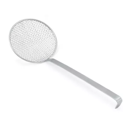 The heavy-duty wire mesh skimmer by Vollrath is an excellent choice for removing food from hot fryers, deep pots and more. The strong construction promises years of service, and the wire mesh allows liquid to drain away quickly and easily. The long, thick handle allows you to maintain a safe distance from hot temperatures and offers a comfortable grip, while the hang-hook at the end provides a convenient storage solution.