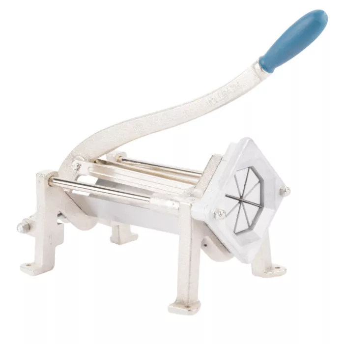 Save time and energy with the Vollrath® wedge-cut potato cutter. This sturdy unit cuts potatoes into eight consistent wedges with one stroke of the sure-grip handle, without causing bruising or waste. The strong, nickel-plated ductile cast-iron frame and handle will last for years, and the durable stainless steel “V” trough ensures easy operation and cleaning. Screw holes on the base of the legs allow you to securely mount this unit to your countertop to prevent movement and maintain stability.