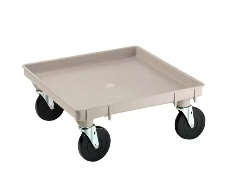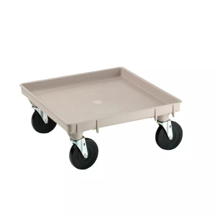 Constructed of impact-resistant copolymer with reinforced caster mounts and a rib-reinforced base
