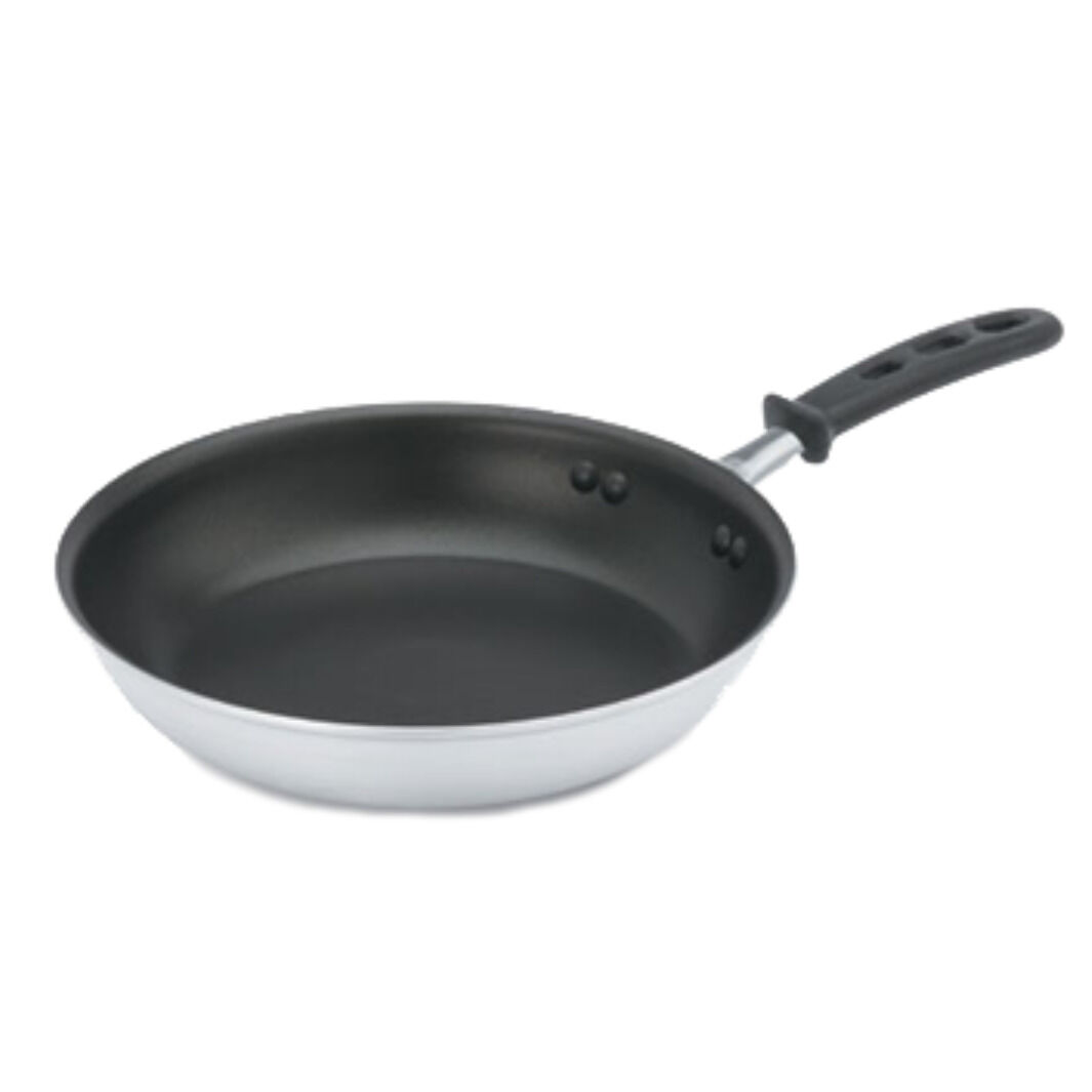 The Vollrath® Wear-Ever fry pan is built for demanding commercial kitchens. Made of heavy-duty, impact-resistant aluminum, this pan heats and cools quickly. The SteelCoat x3 nonstick coating uses advanced technology to bring you longer life, better food release, faster cleaning and lower replacement costs. The silicone TriVent handle withstands temperatures up to 450°F, minimizes heat transfer and promises a comfortable, ergonomic grip. The Ever-Tite™ riveting system offers a lifetime limited warranty against loose rivets, and the coated, low-profile rivets ensure easy cleaning.