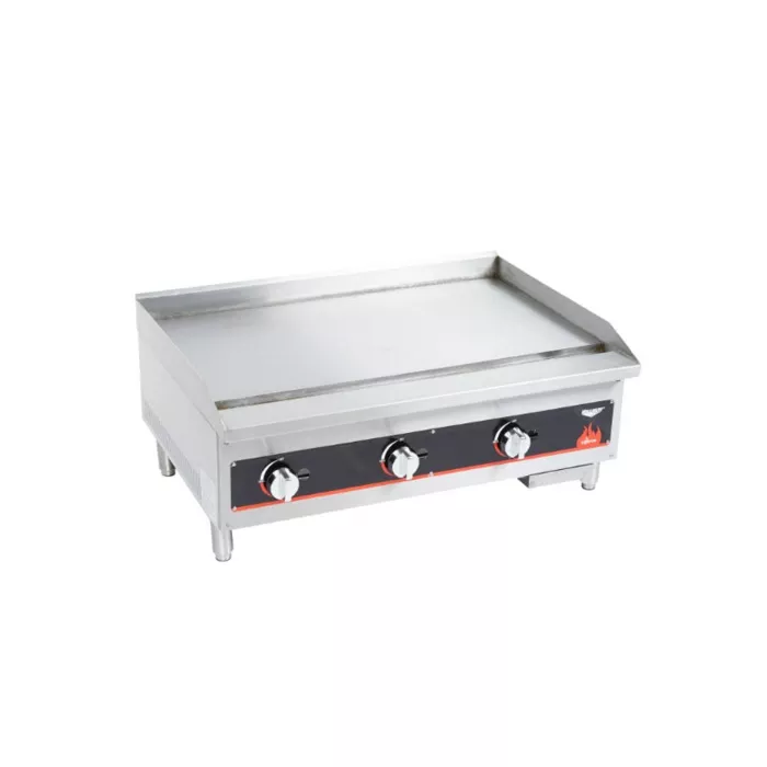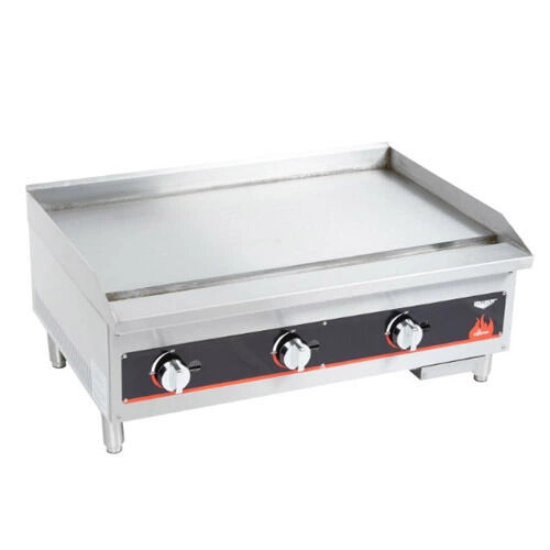• Dimensions: 36" W x 27" D x 17-1/2" H; 19" cooking surface depth; 2-3/4" H backsplash & tapered sidesplashes; 4" adjustable legs