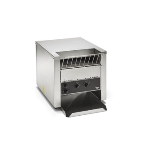 Forced convection system keeps the toaster cool to the touch and extends the life of critical components. The forced convection system increases productivity by circulating pre-heated air into toasting chamber. Quartz infrared heaters provides faster, more consistent heating than traditional heating elements. Compact design requires only 14-1/4" of counter space and the forced convection system allows the unit to be placed against a wall. The QCS2-600H unit with a 3" high opening produces up to 600 slices of toast per hour. Easy to use control panel takes the guesswork out of speed control settings. Variable speed control for perfect colour and texture of bread, bagels, English muffins and more! Energy efficient operation with power saver switch reducing electricity consumption by 75%; quartz heaters return to full power in seconds vs minutes for metal-sheathed elements.