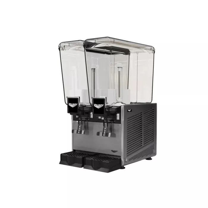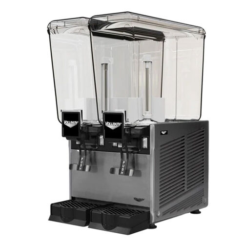 The Vollrath® Refrigerated Double Beverage Dispenser is a commercial-grade machine designed to dispense cold, pre-mixed beverages such as juice, tea, and other refreshing drinks. It has two polycarbonate food-grade bowls, each with a capacity of 5.3 gallons. The machine is built with a durable stainless steel unibody cabinet that is easy to clean.