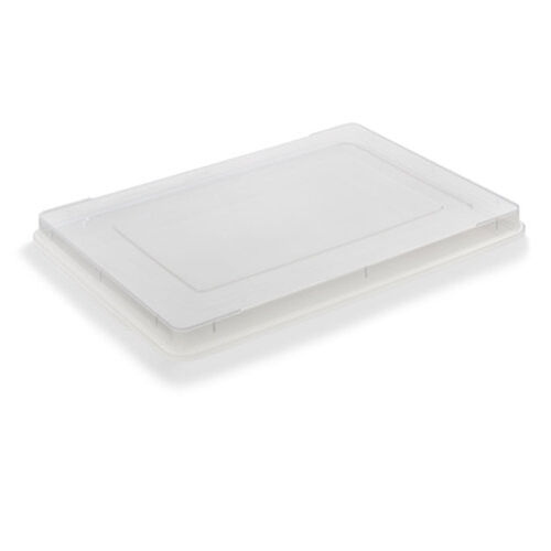 Clear polypropylene provides great food visibility. Ridge on top of cover allows for secure stacking. Designed to allow 90 degree stacking rotation.