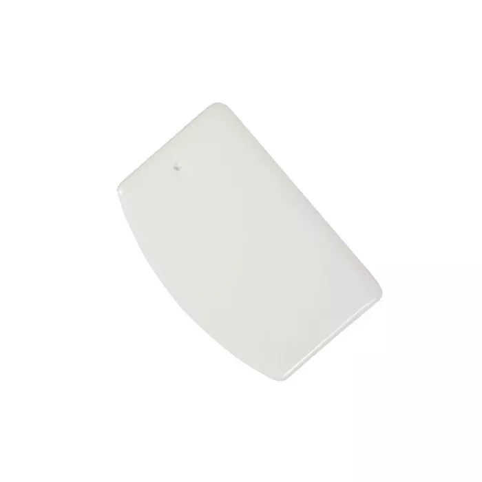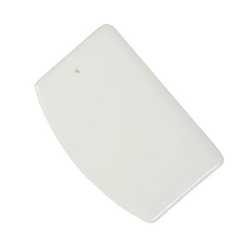 This scraper's rigid polyethylene construction is versatile and easy to use and saves product to help reduce waste. Use the straight edges to scrape counters and tables, and the curved edge helps get product off bowl sides. A hole along the top edge for easy hanging after washing, allowing for quick drying.
