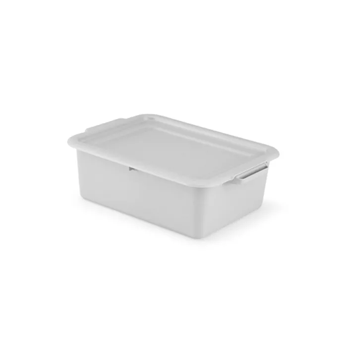 Signature boxes have smooth interior bottom and ribbed exterior bottom. Stacking lugs prevent sticking together and allow for quicker drying. Boxes have a hole in handle for easy drainage and are reinforced. Smooth bottom for easy clean up. Made of high-density polyethylene. Approved for temperatures up to 180°F and as low as -30°F (-34°C).