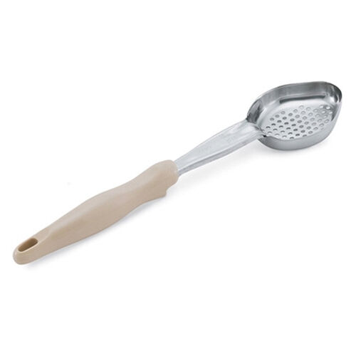 Reduce waste and maximize serving efficiency. Capacities clearly stamped on shaft for easy size identification. One-piece construction is durable and sanitary. Textured handle surface prevents slippage while in use. Color coded for quick size identification. High temperature patented nylon handle - heat resistant to 450°F (232°C). Mirror-finished stainless steel shafts and bowls are resistant to corrosion. Built-in stopper notch prevents Spoodle utensils from sliding into food product. Ergonomic design offers comfort and reduces hand fatigue. NSF certified.