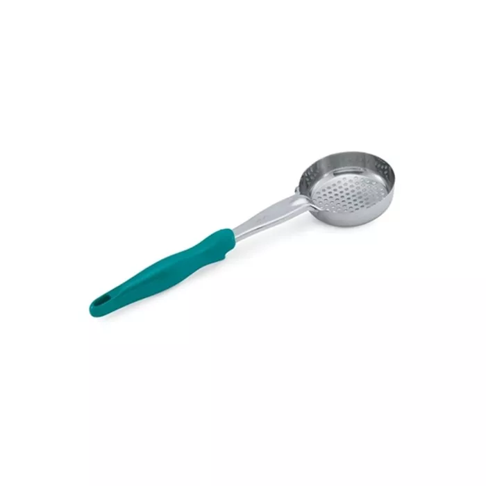 Reduce waste and maximize serving efficiency. Capacities clearly stamped on shaft for easy size identification. One-piece construction is durable and sanitary. Textured handle surface prevents slippage while in use. Color coded for quick size identification. High temperature patented nylon handle - heat resistant to 450°F (232°C). Mirror-finished stainless steel shafts and bowls are resistant to corrosion. Built-in stopper notch prevents Spoodle utensil from sliding into food product. Ergonomic design offers comfort and reduces hand fatigue. NSF Certified.