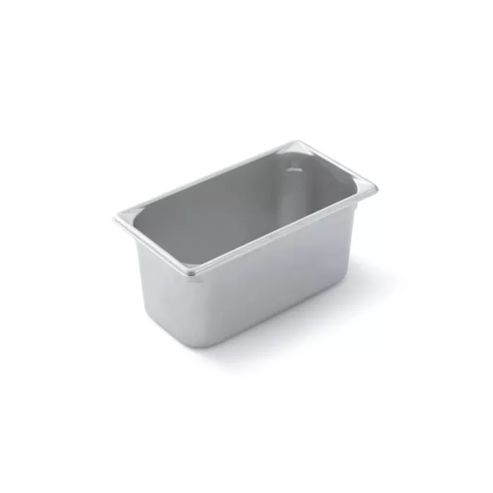 Super Pan V Third Size Food Pan, 6'' deep, 22 gauge 300 series stainless steel, reinforced pour corners, reverse formed flattened edges, anti-jamming design, NSF, USA made