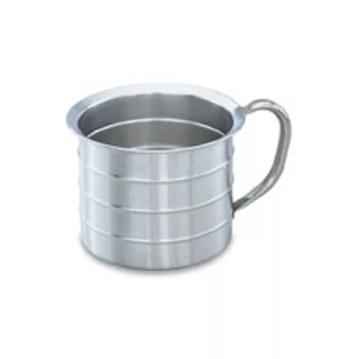 Heavy-gauge 300 series stainless steel. Graduated in quarts. Comfortable tubular handle. Flared edge makes pouring easy. NSF Certified.