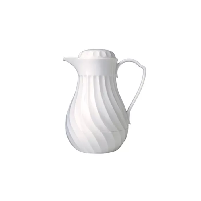 SwirlServe® insulated server keeps beverages hot or cold for hours. NSF certified pouring system lets you pour without pressing buttons. Self-closing spout disassembles for easy cleaning. Durable polycarbonate inner liner is odorless and stain resistant. Polyurethane insulation in body and cover. Exterior looks like porcelain but is actually impact-resistant plastic. Not for use in microwave. Hand wash only.