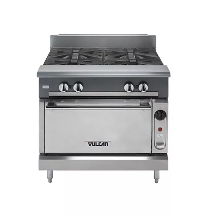 Stainless steel front, front top ledge, burner box, sides, base and stub back