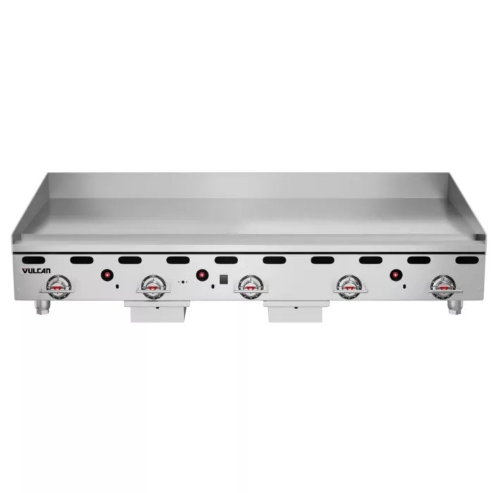 - 1" thick polished steel griddle plate with 12 gage, 4" stainless steel back and tapered side splashes