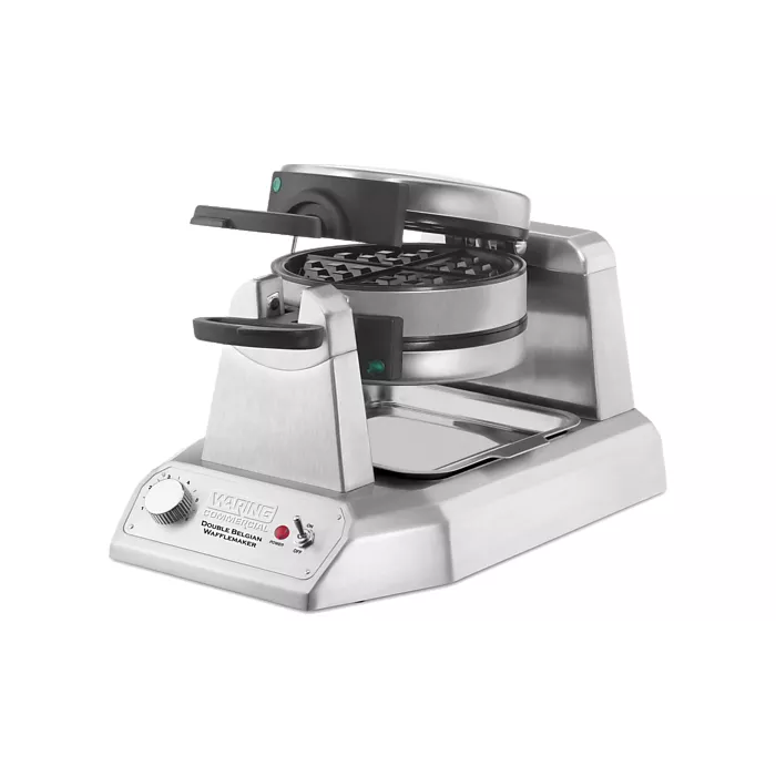 Make your breakfast service an experience to remember with the Waring® WW200 Double Belgian Waffle Maker. Its space-saving vertical design cooks two waffles at a time, so you can make up to 50 thick, delicious waffles per hour. Triple-coated nonstick surfaces, heavy-duty, die-cast housing, embedded heating elements and a rotary feature ensure even results and quick cleanup.
