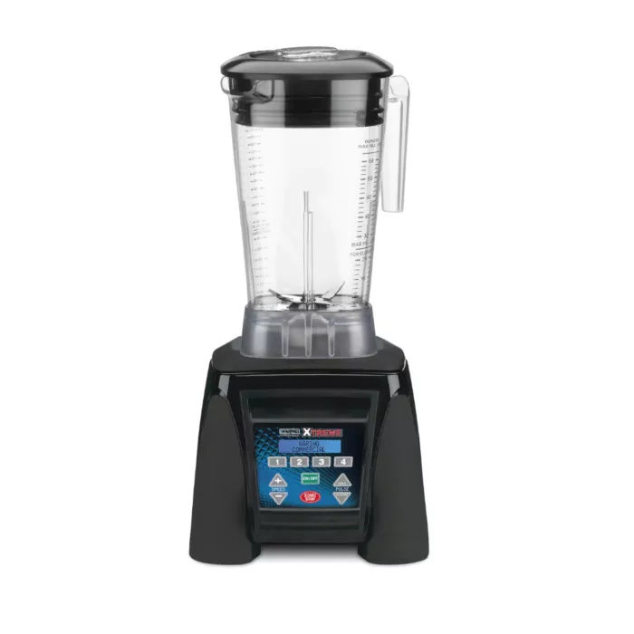 Get smooth, consistent results every time with the Waring® MX1300XTX. This heavy-duty, 3.5 HP blender teams up with The Raptor® blade and jar assembly for maximum power and efficiency. It powers through the toughest ice and frozen fruit mixtures in seconds. The sturdy base features an easy-to-clean, electronic-membrane keypad with a blue backlit LCD screen and four reprogrammable beverage stations. Perfect for a busy bar, health facility, school, or coffee shop.