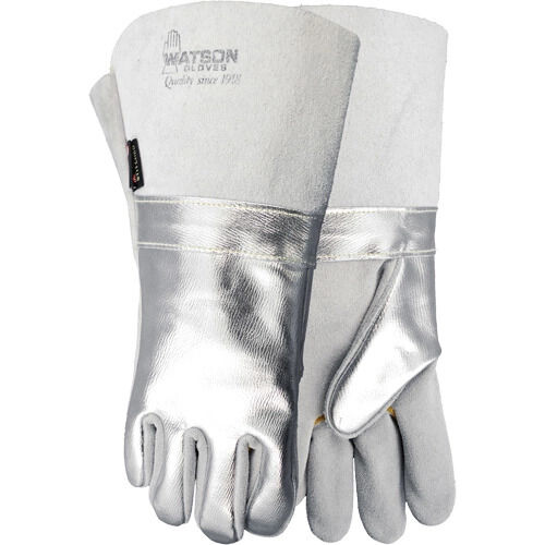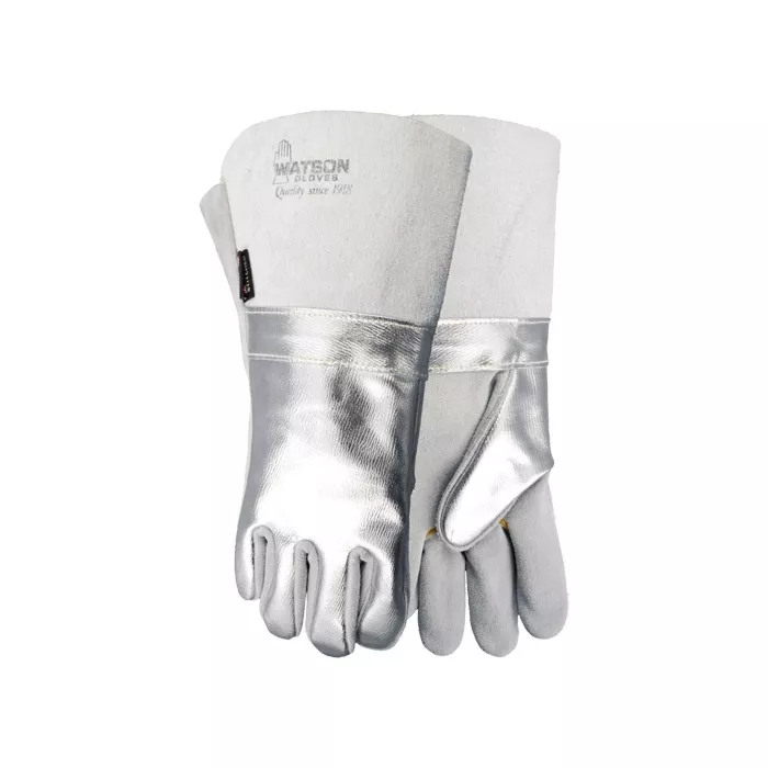 - Aluminized leather heat shield on back offers superior protection from radiant heat and molten splash