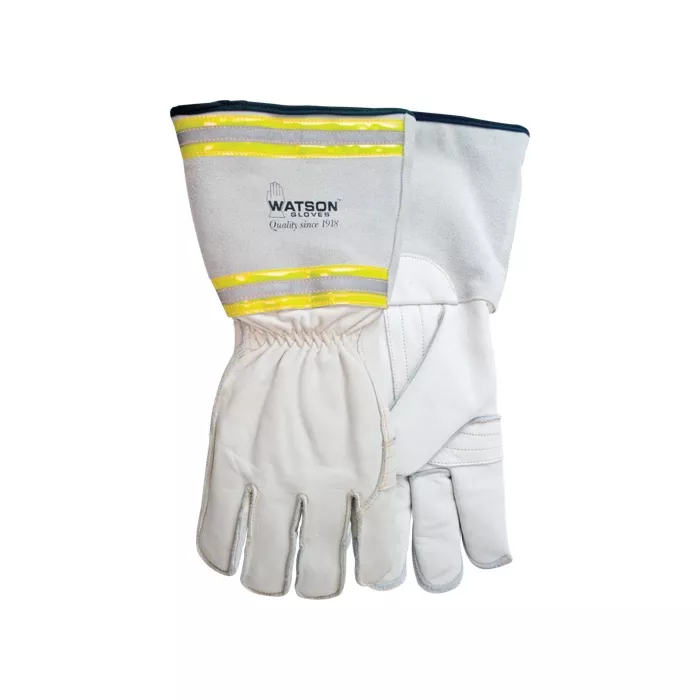 - 5 1/2" reflective gauntlet cuff, leather gore with binding trim