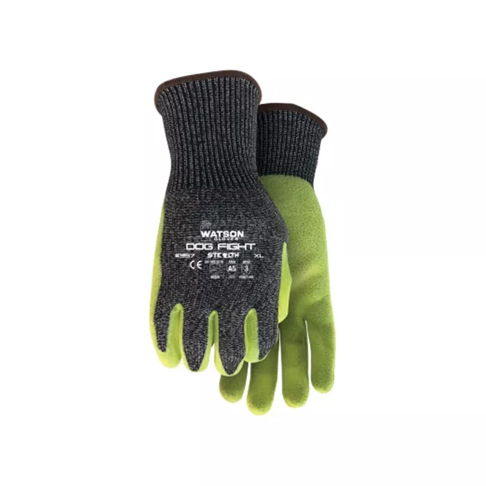 - "Be safe, be seen" with hi-vis safety yellow, sandy nitrile coating
