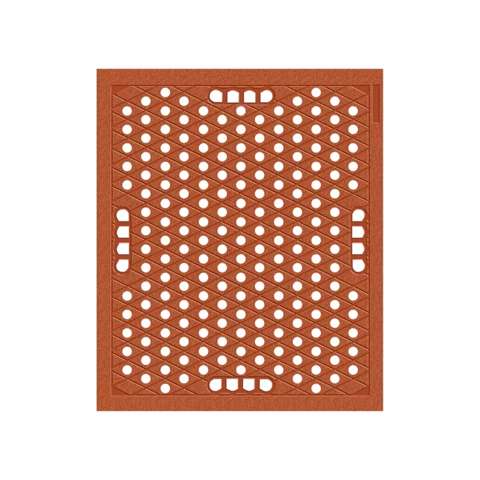 - Hygienic porthole and solid underside design of the mat simplify cleaning and virtually eliminates areas where food can collect