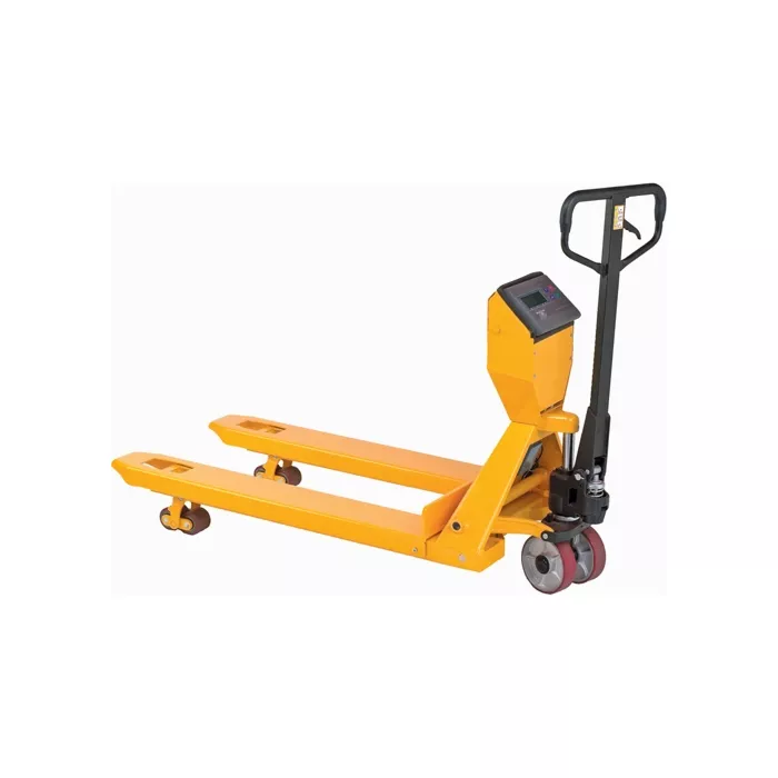 - This pallet truck saves time and increases efficiency by allowing users to determine pallet loads while handling them