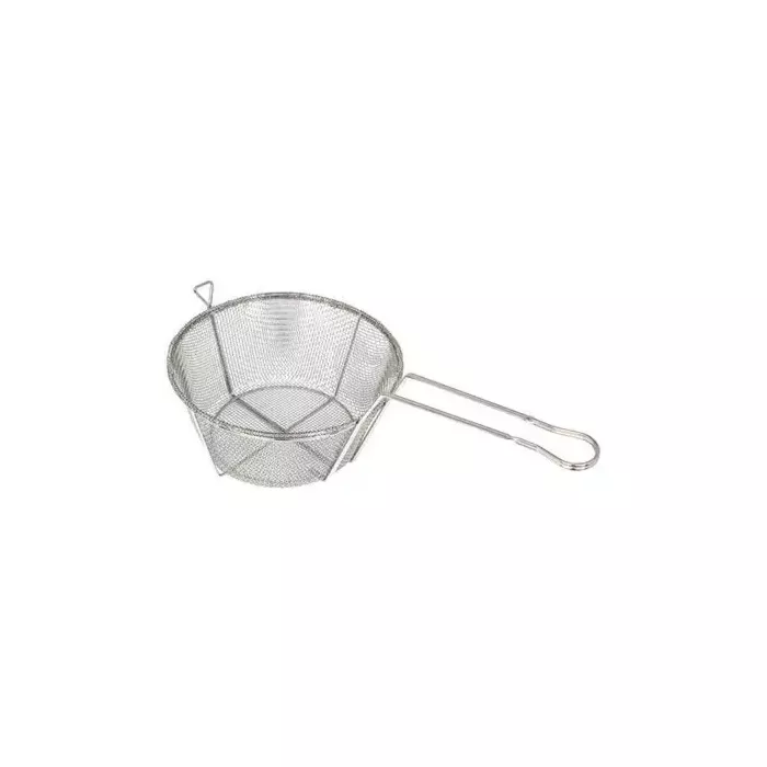 Using a small, round mesh basket along with a fryer/ pasta pan is an ideal solution for a small kitchen where a dedicated deep fryer may not be possible.