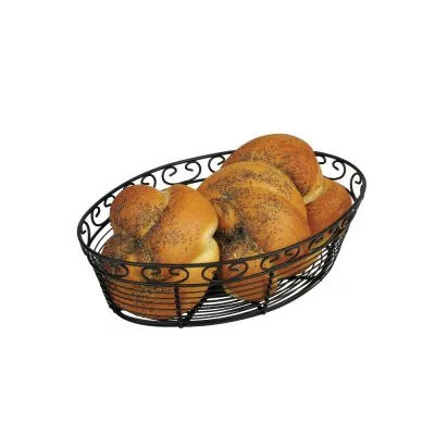 Wire reinforced bread/fruit basket, black oval 10" x 6 1/2" x 3"