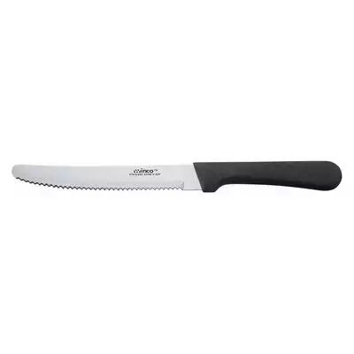 5" Blade Steak Knife, Round Tip. Black Plastic Handle.