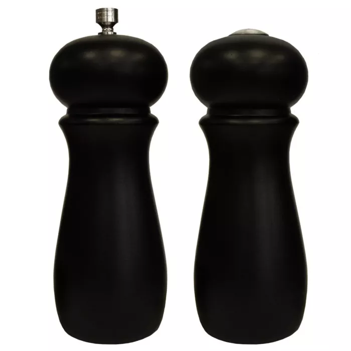 Salt shaker & pepper grinder with urban decorative style, rubberwood, black Matte Finish, 2 pcs/Set