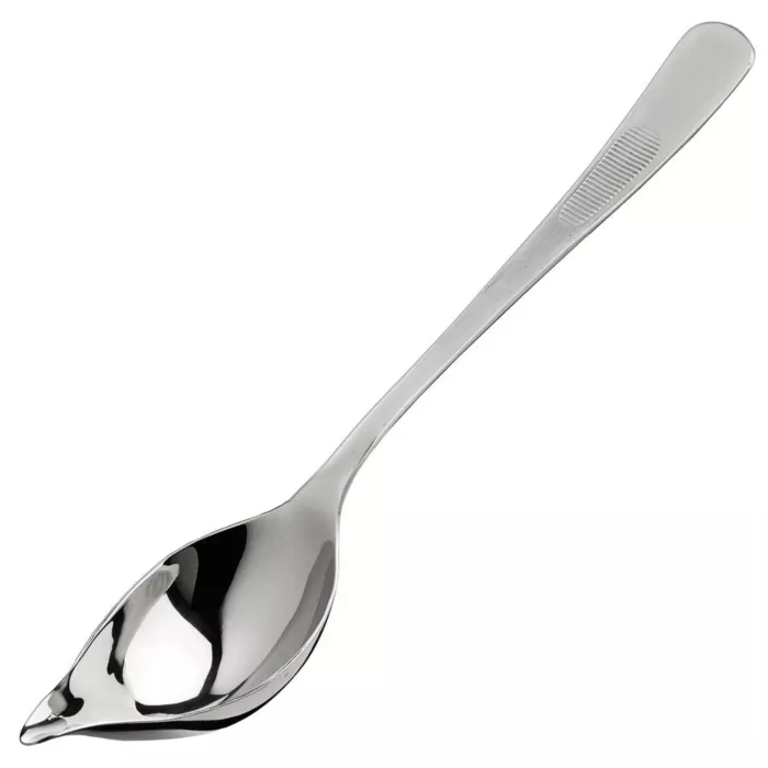 Easily create stylish and artistic plated foods with our tapered spout saucier spoons. The tapered end allows for control in drizzling and the deep bowl reduces the need to refill.
