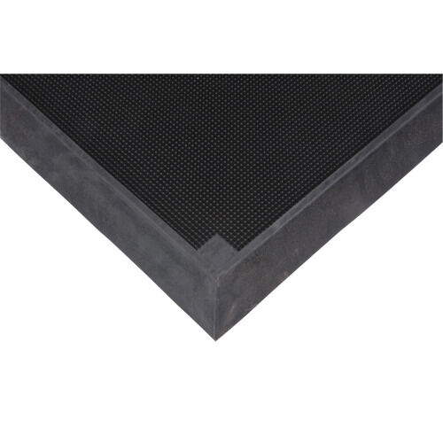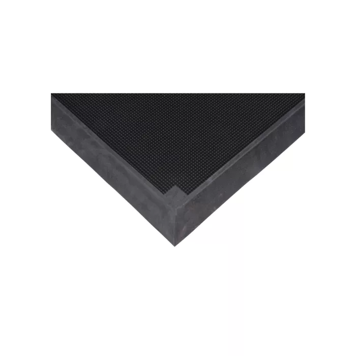 - Rubber scrappers at the base of the mat dislodge contaminants from shoes or boots while the soles are soaking in solution